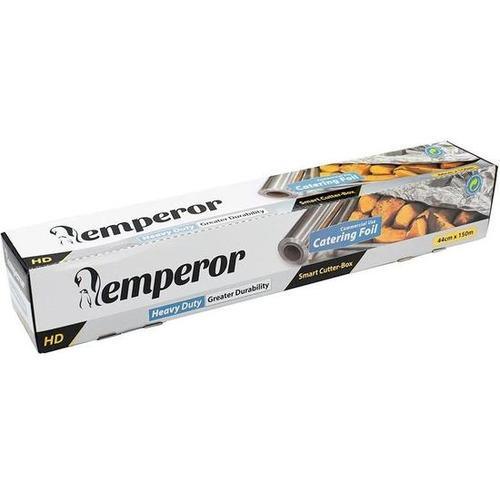 Uses: Emperor aluminum foil is a high-quality product, designed to provide a higher resistance to punctures and tears. This makes it great for covering and transporting larger surface pans and trays, as well as covering and lining hot cooking surfaces. Packaged in a convenient cutter-box dispenser, you can quickly and easily pull out the desired amount of foil and tear off by gently pulling down across the teeth of the blade (making daily prep and clean-up a breeze). Aluminium foil can also be recycled if cleaned prior to disposal. Ideal for more delicate catering requirements and general kitchen applications. Lower thickness and greater flexibility. High puncture and tear-resistance. Oven safe. Line baking sheets and ovens, cover grills and grill grates. Convenient cutter-box design for easy use.