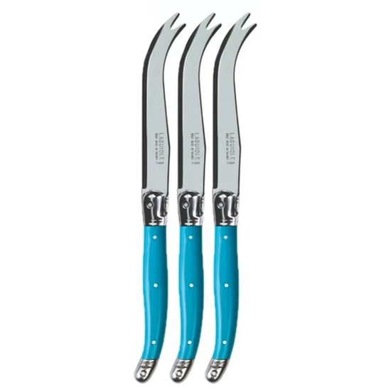 Enhance your dining experience with the Verdier Cheese Knife Single Blue. Crafted with precision in France, this set of 3 cheese knives is designed to elevate your cheese board presentation and enjoyment.