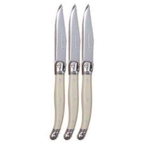 Introducing the AV703IF Andre Verdier Laguiole Debutant Fruit Knives Ivory, a set of 3 exquisite fruit knives crafted with precision in France. These knives are designed to elevate your dining experience with their exceptional features: