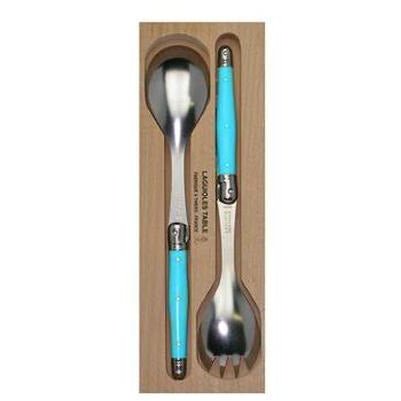Enhance your dining experience with the AV762BLU Salad Server Set in Blue from the Andre Verdier Laguiole Debutant Series. Crafted with precision in France, each piece is a testament to exquisite craftsmanship and attention to detail.
