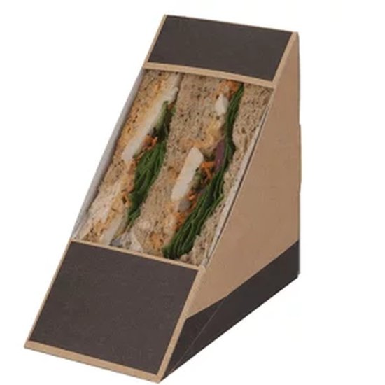 Introducing the Café Collection Rear Loading Sandwich Wedge in slate grey, measuring 123 x 72 x 123 mm. This innovative sandwich wedge is designed to accommodate 2 deep-filled sandwiches, providing a convenient and attractive packaging solution for your culinary creations.