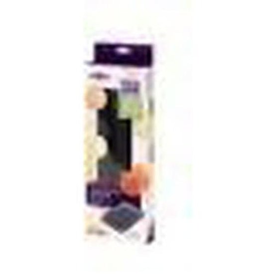 The Mastrad macaron baking sheets (set of 2) has 25 ridges on each sheet with precise filling marks that makes1.5" perfectly sized pastry shells. The set of 2 allows you to load one sheet while the other is baking. - The flexible, non-stick, silicone sheet makes turning out easy and guarantees perfectly sized macarons every time. - Also handy for meringues, biscuits, cookies, etc. - The sheet can be flipped over and used as a smooth baking sheet - Ridge size is 1.5" diameter - Heat resistant to 430 degrees F - Sheet size is 7.8" x 11.8"; one sheet fits standard quarter-sheet baking tray, and two sheets fit together on standard half-sheet baking tray