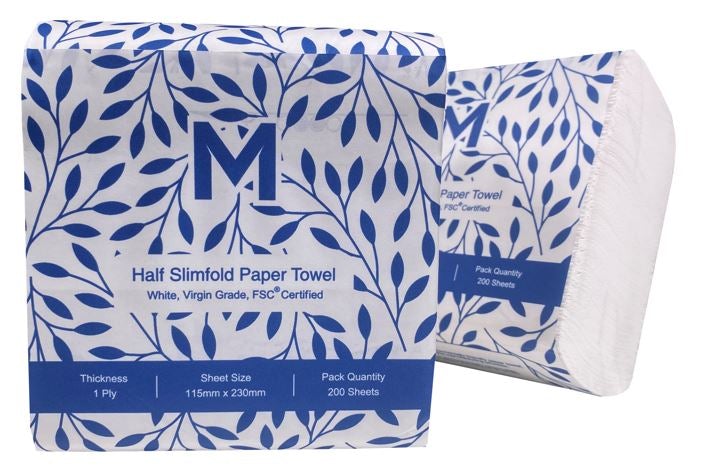 Half Slimfold Paper Towel - White, 115mm x 230mm, 1 Ply (8000) Per Box