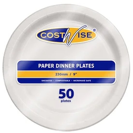 Upgrade your dining experience with Costwise uncoated paper plates. These round, white plates are designed to accommodate your dining needs with a size of 9 inches (230 mm). Their recyclable nature makes them an eco-friendly choice. Whether you're serving hot or cold food, these plates are suitable for all your culinary creations. Say goodbye to washing dishes and hello to convenience with Costwise Dinner Plates.