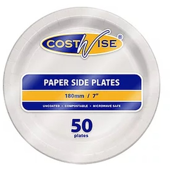 Introducing Costwise side plates, the perfect solution for your serving needs. Crafted from uncoated paper, these round, white plates come in a convenient size of 7 inches (180 mm), making them suitable for a wide range of dishes. Designed to be recyclable, these plates are an environmentally conscious choice for your events and gatherings. Whether you're serving hot or cold food, Costwise side plates have got you covered. Elevate your dining experience with these versatile and cost-effective side plates.