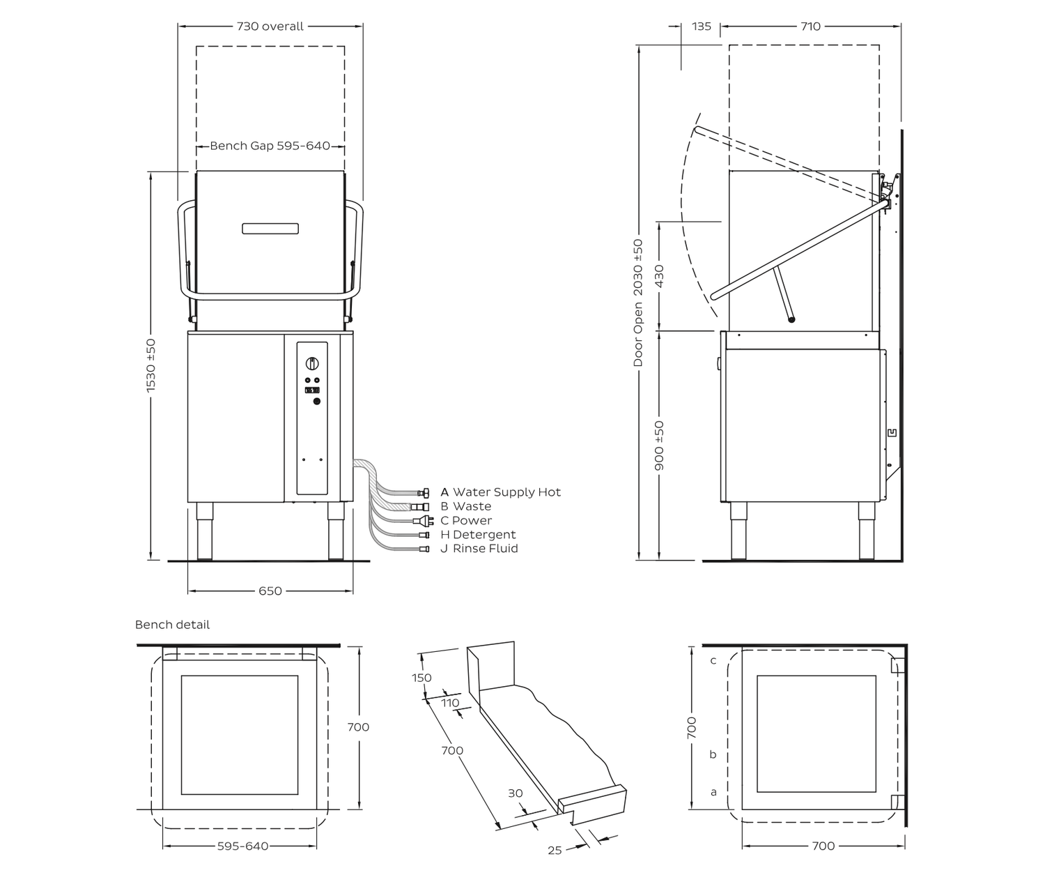- Capacity of up to 1,500 glasses / 1,080 plates per hour