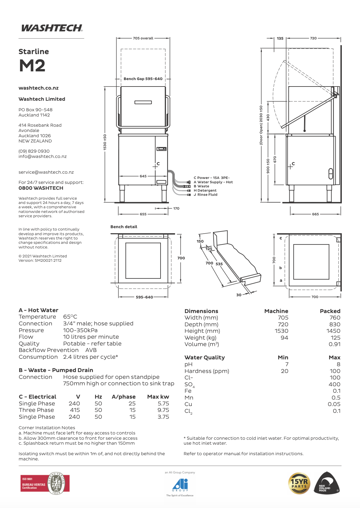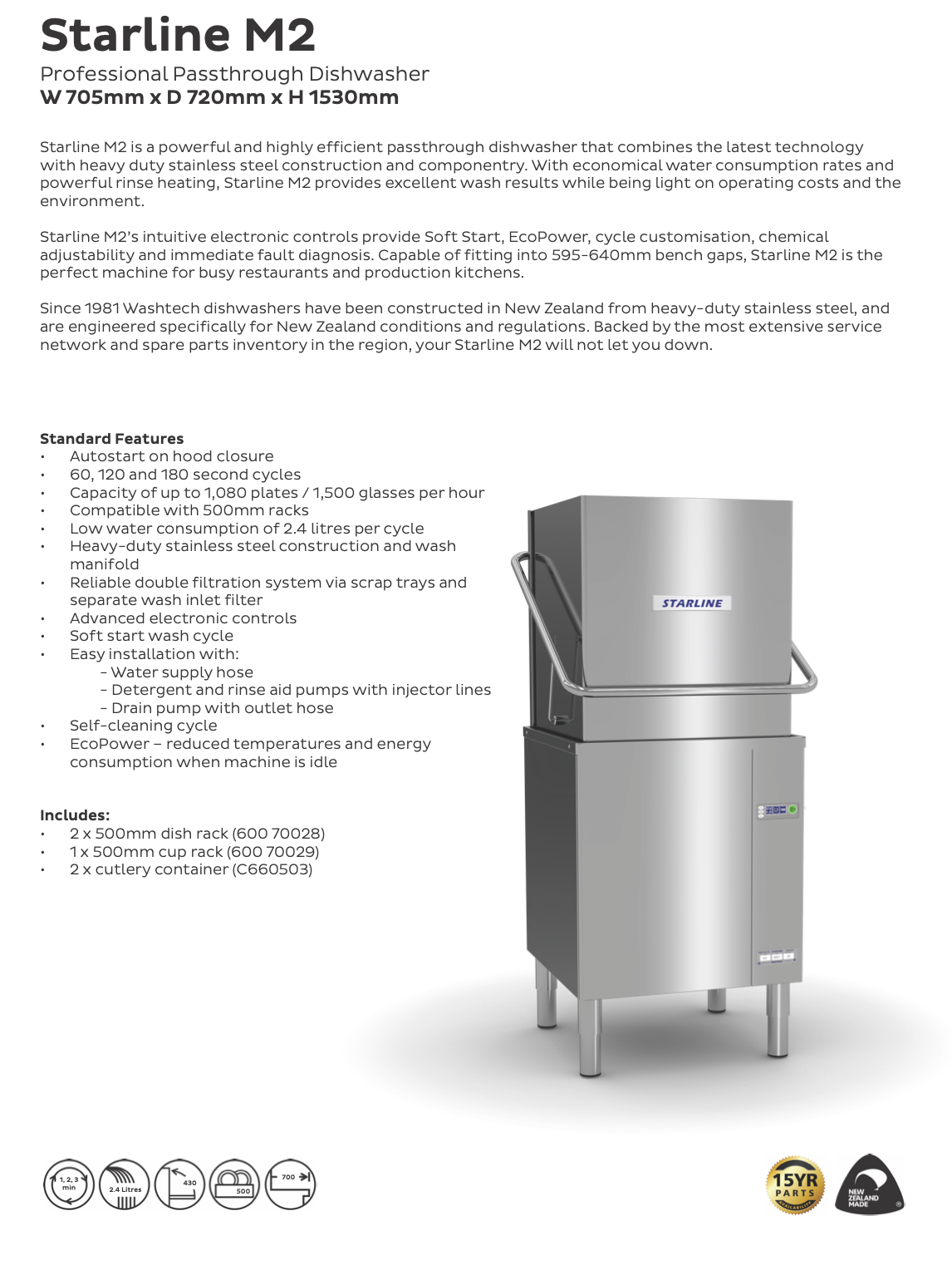 Since 1981 Washtech dishwashers have been constructed in New Zealand from heavy-duty stainless steel, and are engineered specifically for New Zealand conditions and regulations. Backed by the most extensive service network and spare parts inventory in the region, your M2 will not let you down.