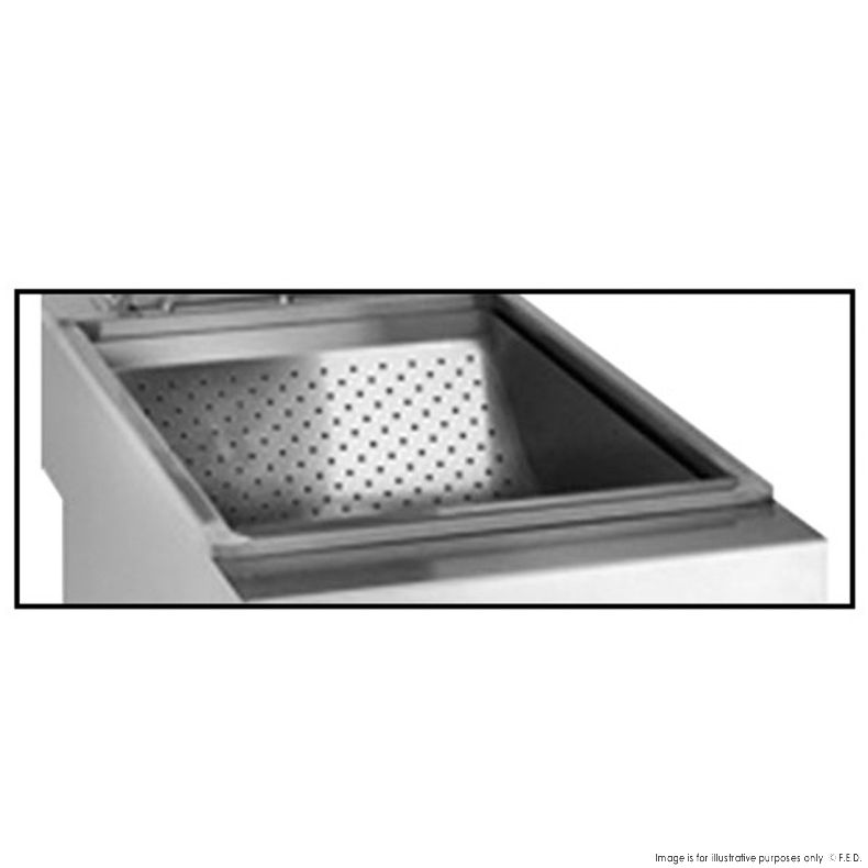 Stainless steel sloped drain top with removable grease collector allows for easy removal of food products & ensures an easy cleanup.