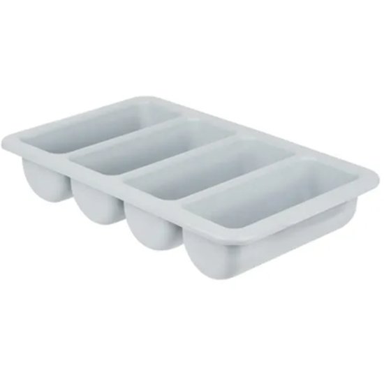 Keep your cutlery organized and easily accessible with this 4 compartment grey cutlery box. Crafted from strong and sturdy grey plastic, it provides the perfect storage solution for individually wrapped condiments or for keeping flatware neatly organized.
