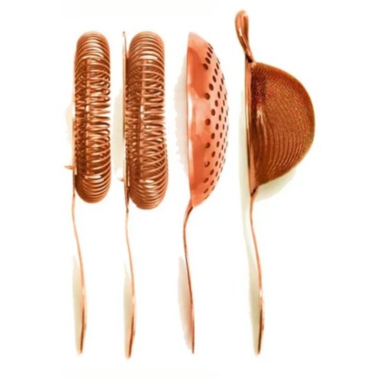 The Bonzer Heritage Strainer Set is crafted to meet all your cocktail straining needs. This set includes the Heritage Fine Strainer, Heritage Sprung Julep, Heritage Fine Strainer, and Heritage Hawthorne Strainer, offering a comprehensive solution for cocktail preparation.