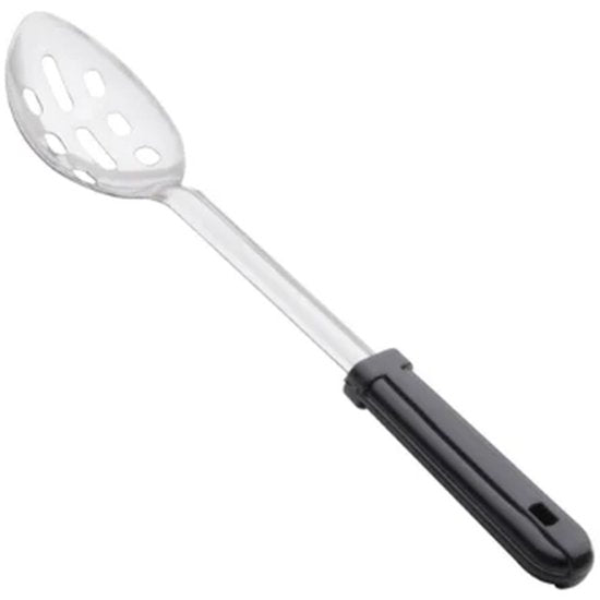 Ideal for professional kitchen use, this 39cm slotted spoon with a black handle combines durability and convenience. The slotted serving head efficiently drains liquids, while the sturdy stainless steel construction ensures long-lasting performance. The comfortable grip provided by the durable black bakelite handle makes it a pleasure to use. Plus, the convenient hanging hole allows for easy storage, making it a practical addition to any kitchen.