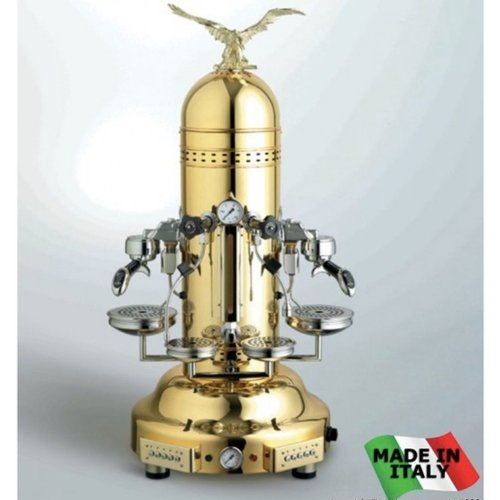 This model is a faithful replica of the Belle Epoque period, the body is handmade with first choice materials. The Eagle model is available in gold brass. The performance of this volumetric espresso machine and the looks.... simply stunning!