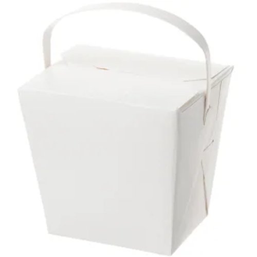 Introducing the White 32oz Cardboard Food Pail with a convenient paper handle. This Castaway SealPak food pail is designed with a leak-proof base, ensuring sauces and juices stay contained in wet meals. Whether you're serving piping hot dishes or chilled delights, this food pail is the versatile solution for packaging various culinary delights. Its specially crafted design is perfect for Asian-style meals like noodles and curries.