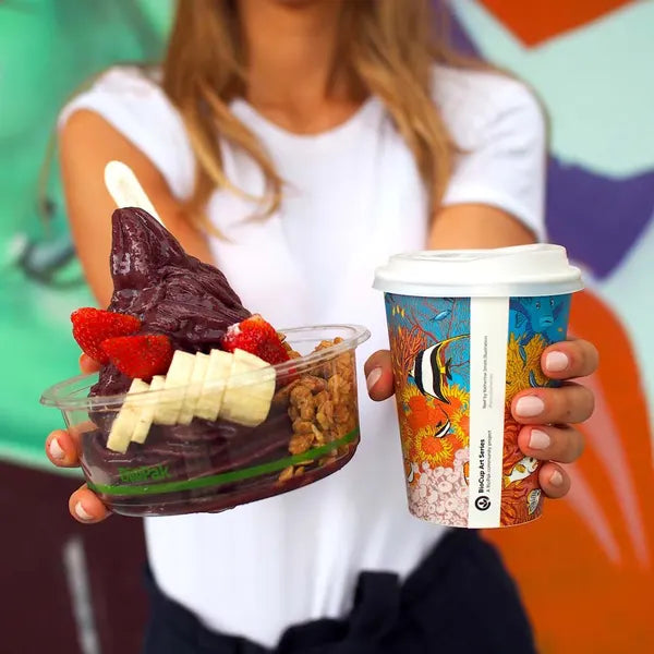 Our 240ml clear bowls are made from Ingeo™ – an ingenious bioplastic made from plants, not oil. BioBowls are certified industrially compostable. Available in 7 sizes. Note: they are suitable for cold use only. Bioplastic bowls are banned in WA and ACT when used without a lid.