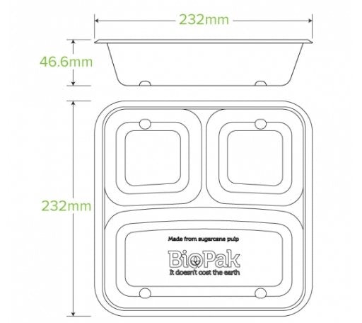 3-COMPARTMENT LARGE BIOCANE TAKEAWAY BASE