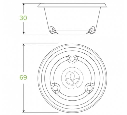 Our plastic-free sauce cups are made from rapidly renewable sugarcane pulp, a by-product of the sugar refining industry. They are certified home compostable. It fits our 60ml PET and PLA sugarcane sauce cup lid.