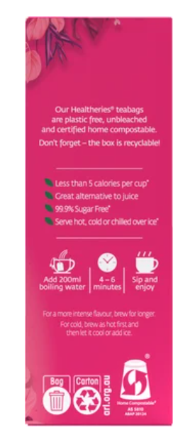 Looking for an exotic berry blend to help you feel super? Healtheries Superfruits Tea is a sensory delight combining nature’s powerhouse of natural antioxidant berries. The juicy blend of Blackcurrant with Cranberry, Acai, and Goji takes this tea to a whole new level of refreshment.