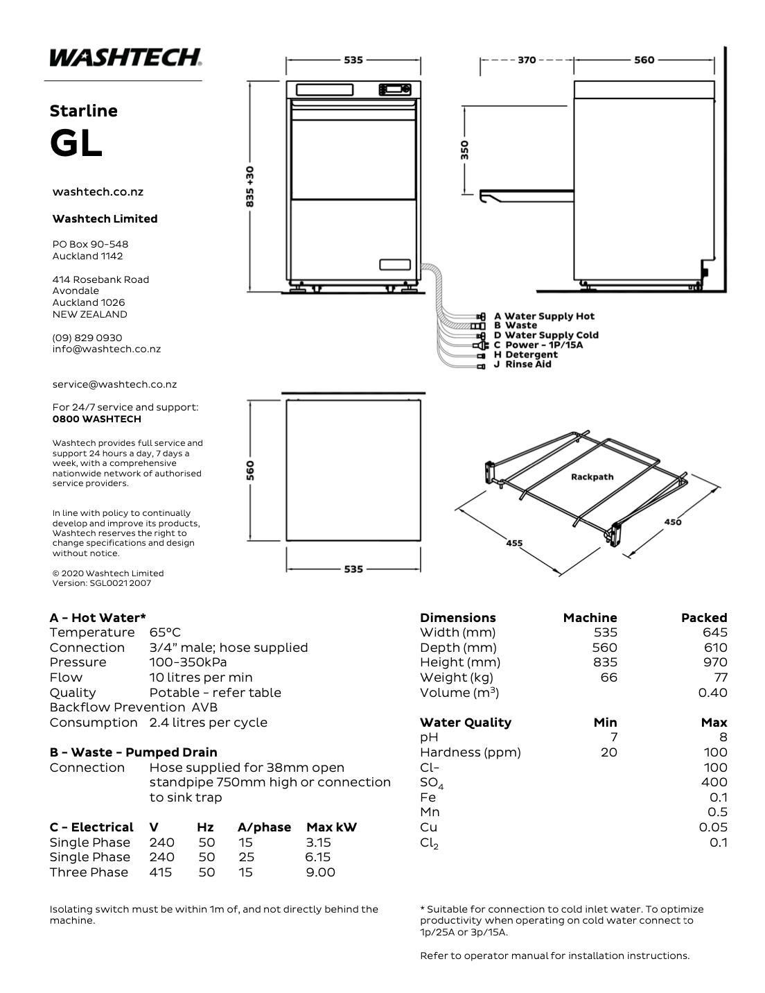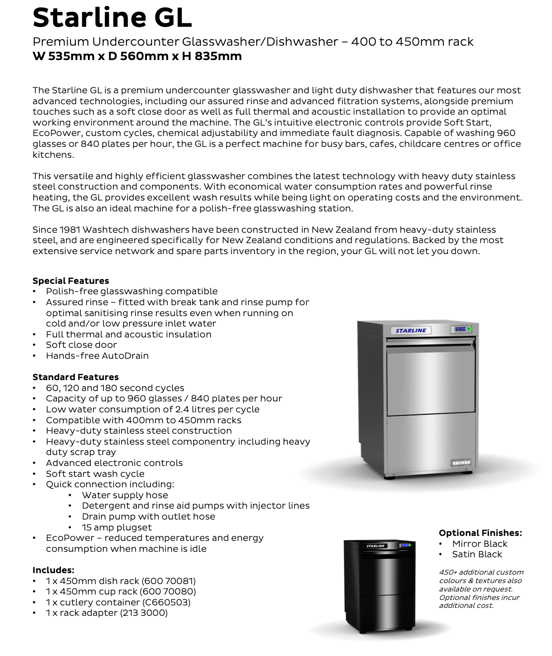 Since 1981 Washtech dishwashers have been constructed in New Zealand from heavy-duty stainless steel, and are engineered specifically for New Zealand conditions and regulations. Backed by the most extensive service network and spare parts inventory in the region, your GL will not let you down.