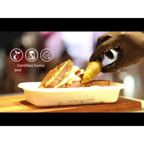 Our plastic-free clamshells are made from rapidly renewable sugarcane pulp, a by-product of the sugar refining industry. 9x6x3" 2-compartment white bagasse clamshell containers are an eco-friendly alternative to plastic takeaway containers.