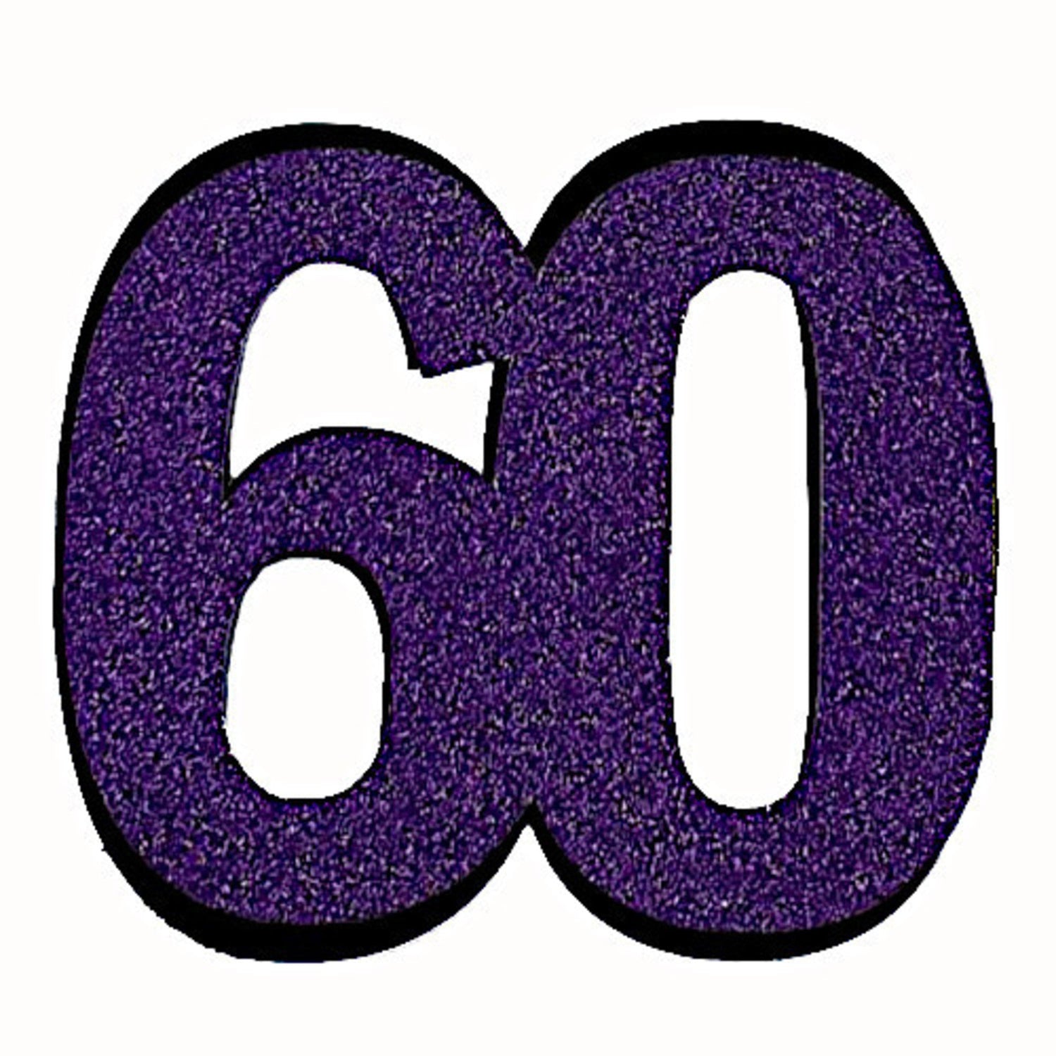 60th Glitter Purple Cake Topper (Card 85x70mm)