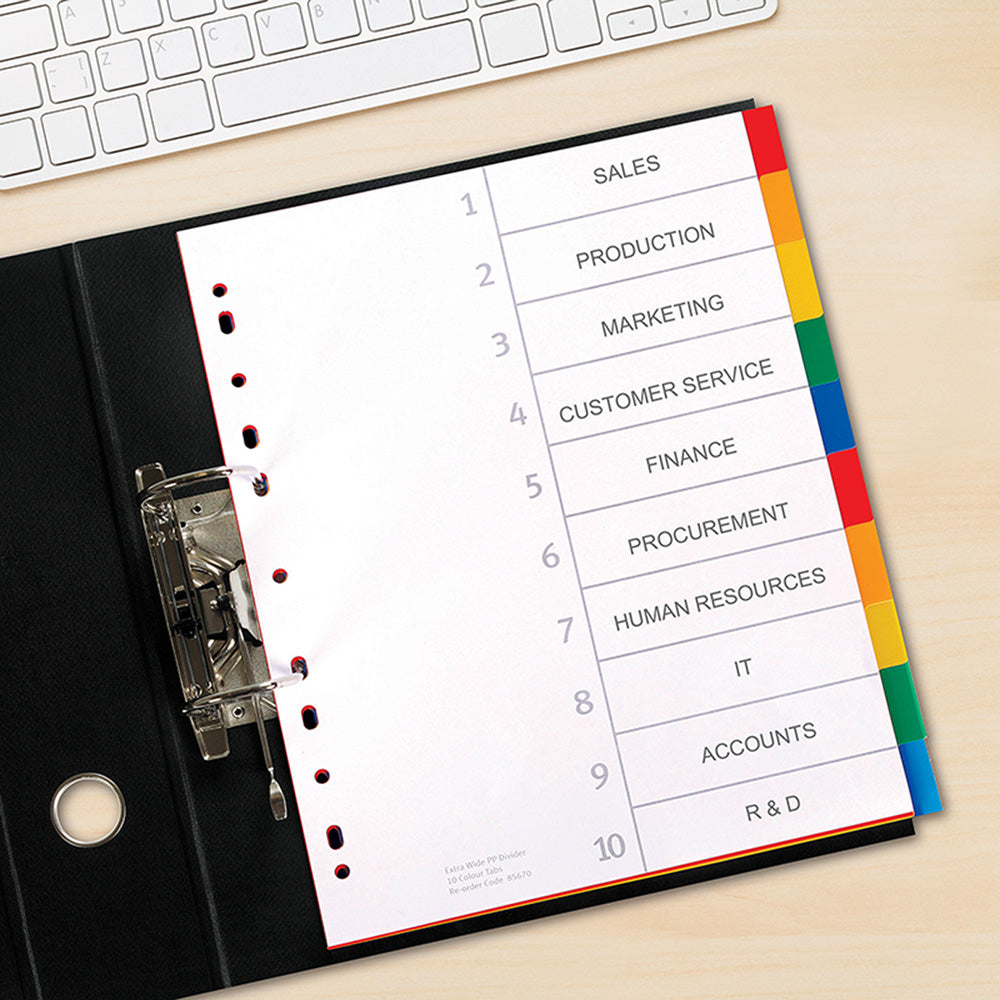 Avery Dividers A4 10 Tab Coloured Pre-Printed Extra Wide L7411-10