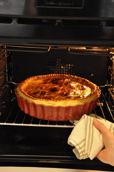A particularly sleek design, high sides, elegant curves and a flat bottom for easy cleaning, the Emile Henry flan dish is perfect for making delicious quiches, pies and tarts all year round. Made from HR® ceramic, it is highly resistant for everyday use and keeps the contents hot right through the meal. It can be used in the traditional oven and microwave, and can be cleaned in the dishwasher. All Emile Henry products are made in France and guaranteed 10 years.