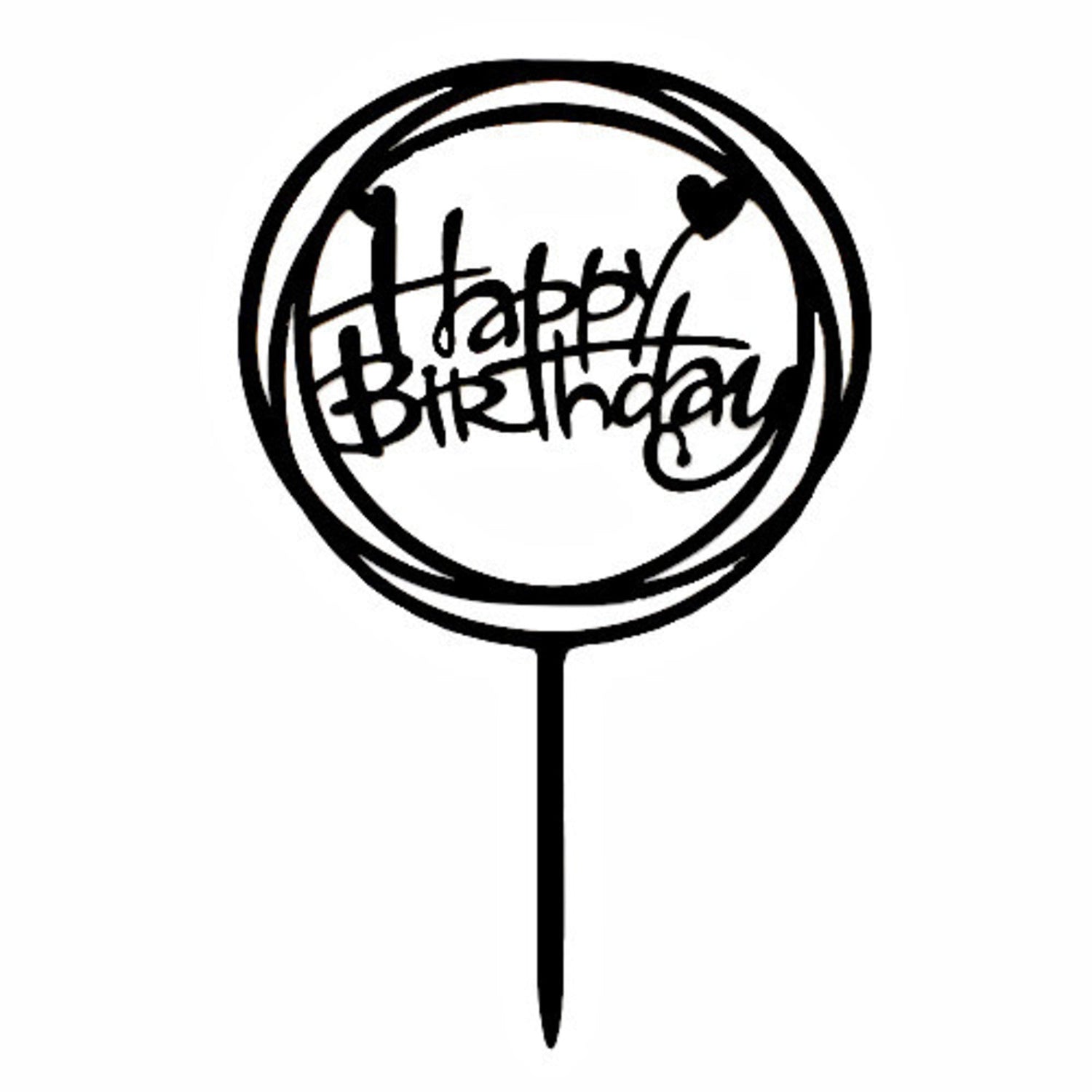 "Happy Birthday" Black Heart Topper Pic (160x100mm)