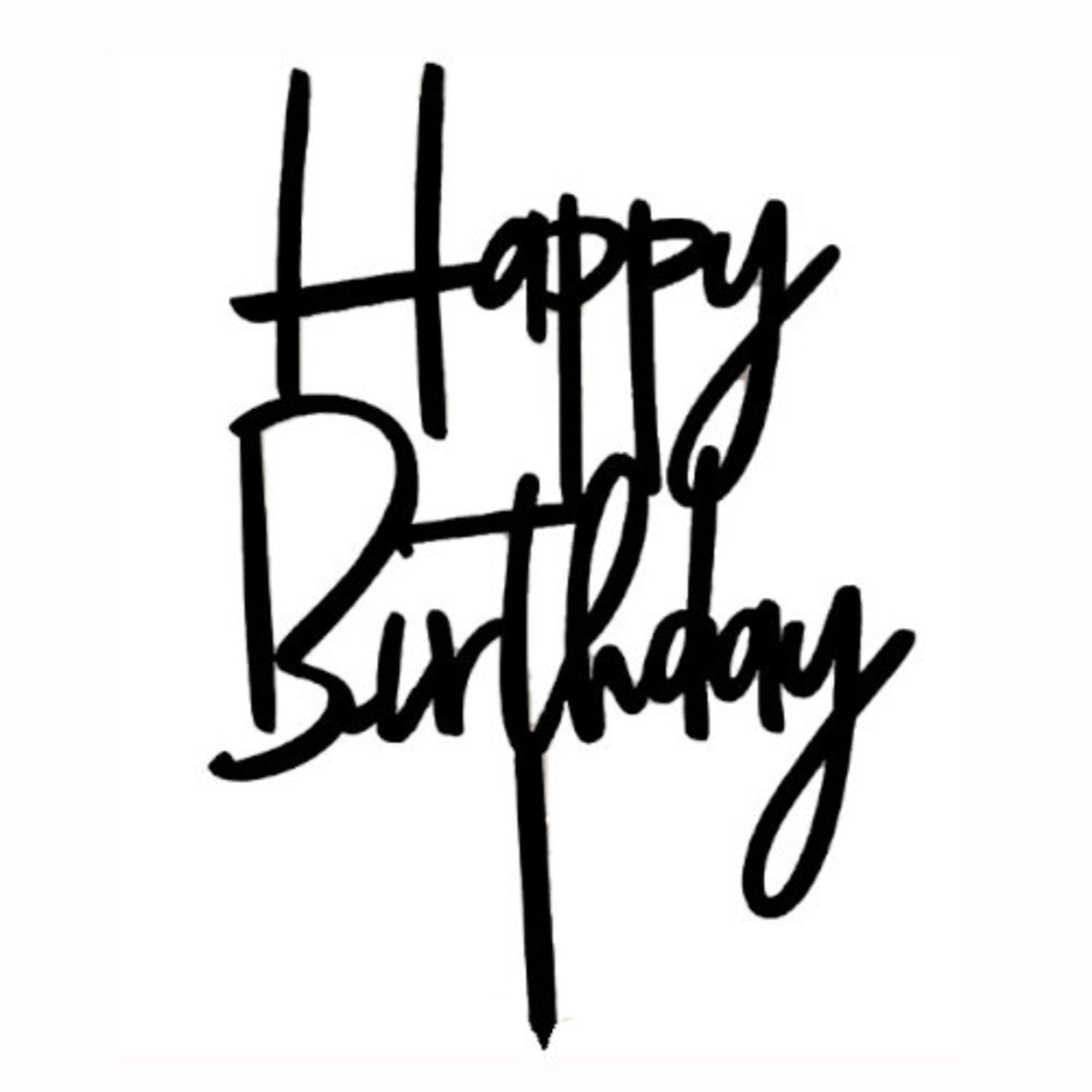 "Happy Birthday" Black Script Topper Pic (150x120mm)