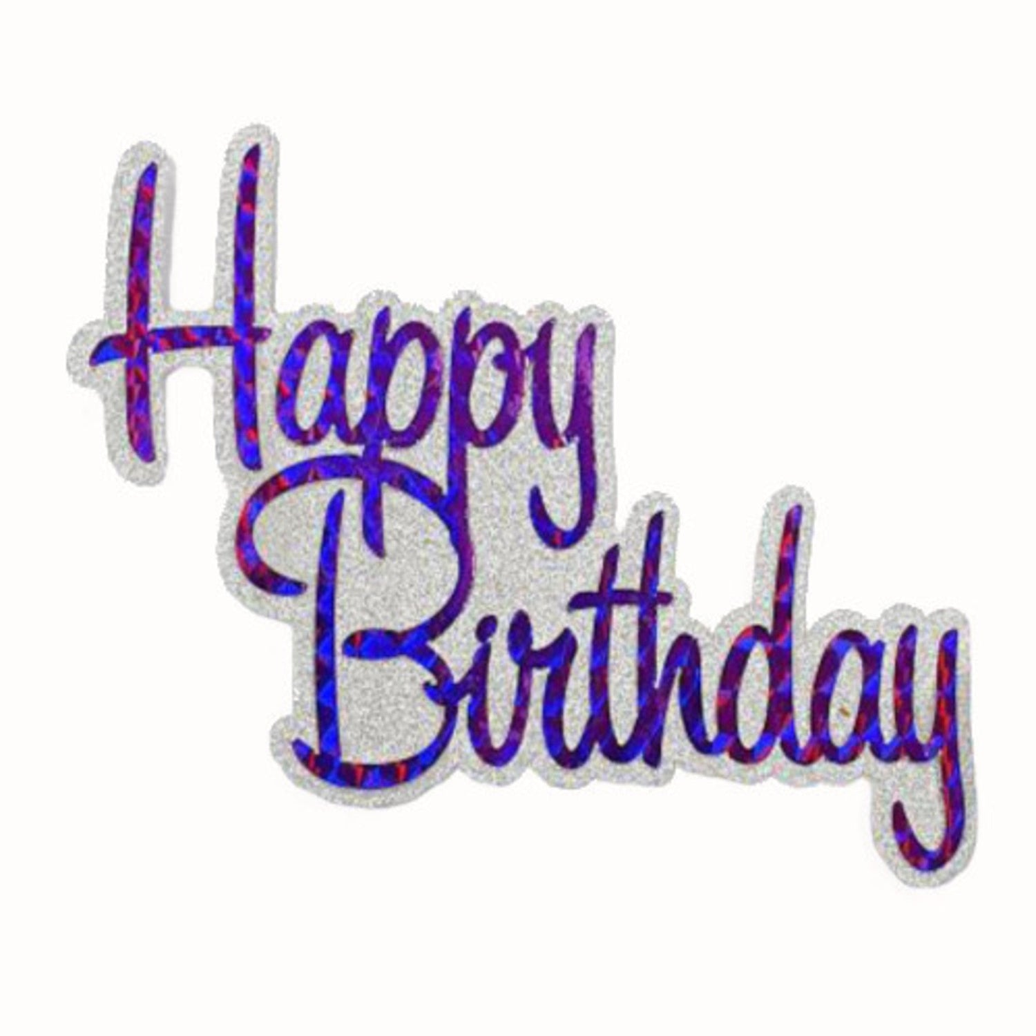 "Happy Birthday" Glitter Silver & Purple Cake Topper (Card 130x110mm)