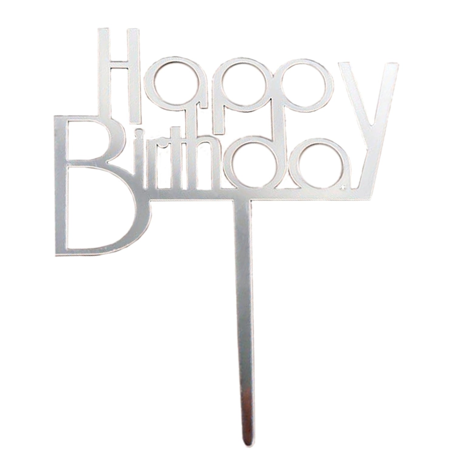 "Happy Birthday" Silver Script Topper Pic (150x120mm)