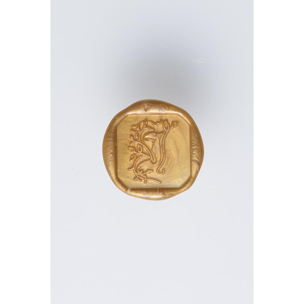 This Herbin Seal is made from 5mm thick brass and the handle is varnished wood. Handle is screwed into the brass. Seal leaves the letter impression with a square around it in the wax. 20x20mm. Illuminated letter J.