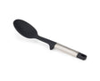 This stylish solid spoon features a large silicone head that's ideal for a wide range of stirring tasks and a sleek stainless-steel handle with an integrated tool rest, designed to prevent the head from touching the worktop when placed down. This not only improves hygiene, but also helps reduce mess during cooking. The silicone head is heat-resistant up to 210ºC/410ºF and perfect for use with all types of cookware, including non-stick, and the handle includes a hanging hole for easy storage.