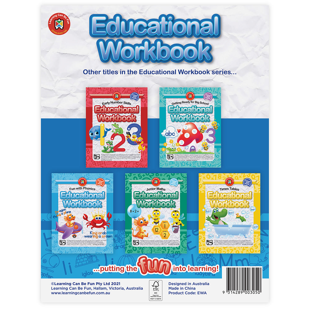This Educational Workbook is an ideal introduction to writing and learning the alphabet. The simple instructions, activities and images are ideal for early learners who are discovering writing and colouring and developing fine motor skills. Designed with a range of fun activities... Learning can be fun!