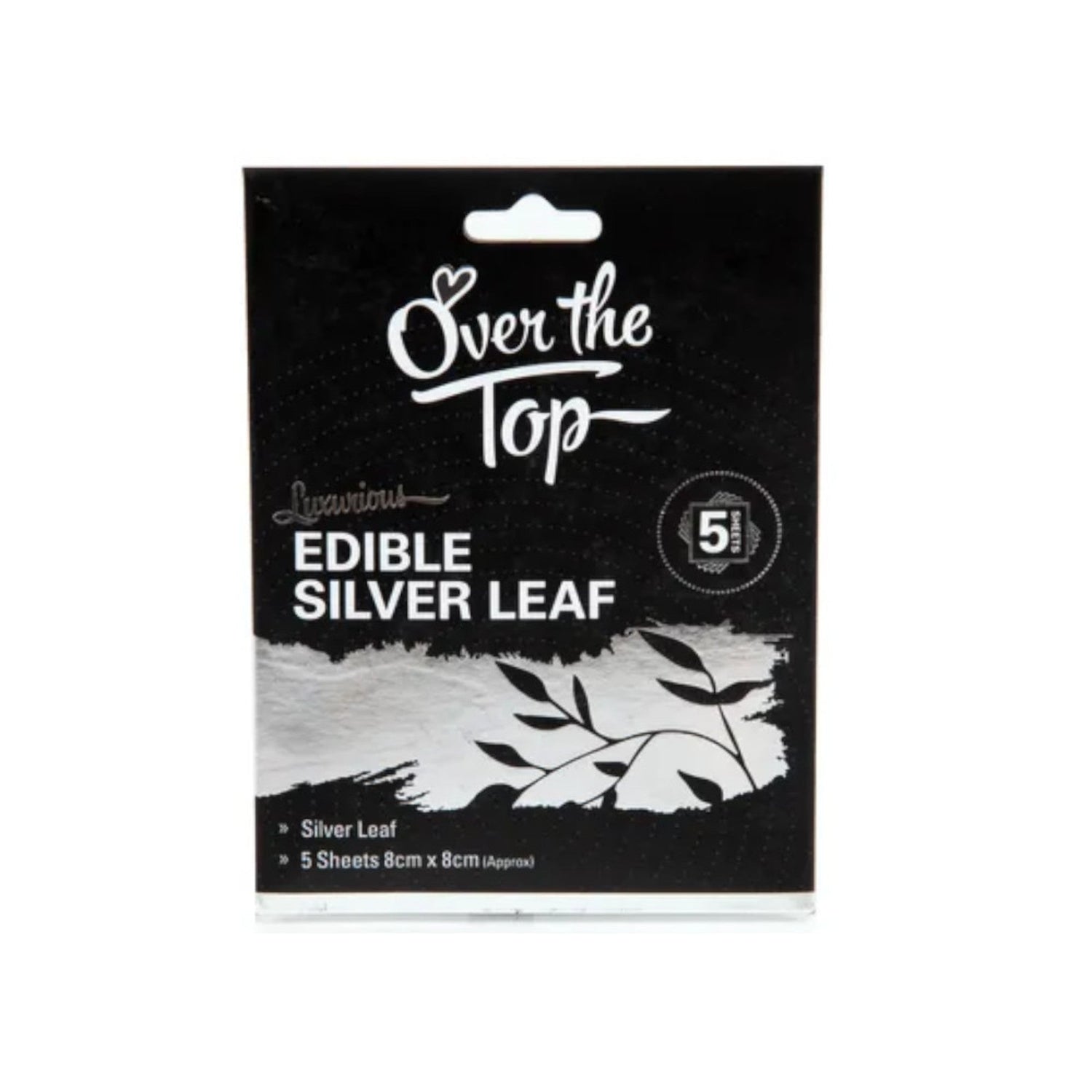 Unleash your creativity with this exclusive pack of 5 silver transfer sheets by Over the Top. Each sheet measures 8cm x 8cm, allowing you to add a touch of elegance to your culinary creations.