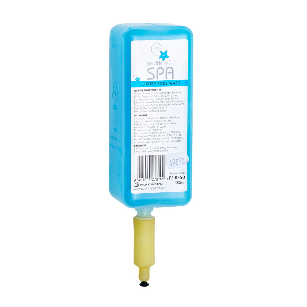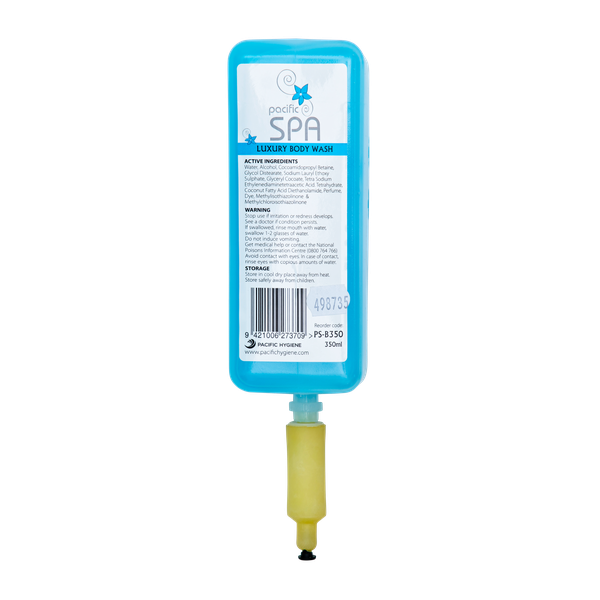 Pacific Spa Body Wash, with a Sweet French Cologne Fragrance, is designed to cleanse and revitalise your skin, leaving you feeling pampered. These 350ml cartridges are designed for use with the Pacific Spa Dispenser, available in Black, White and Silver. Ideal for hotels, motels, B&Bs and gyms.