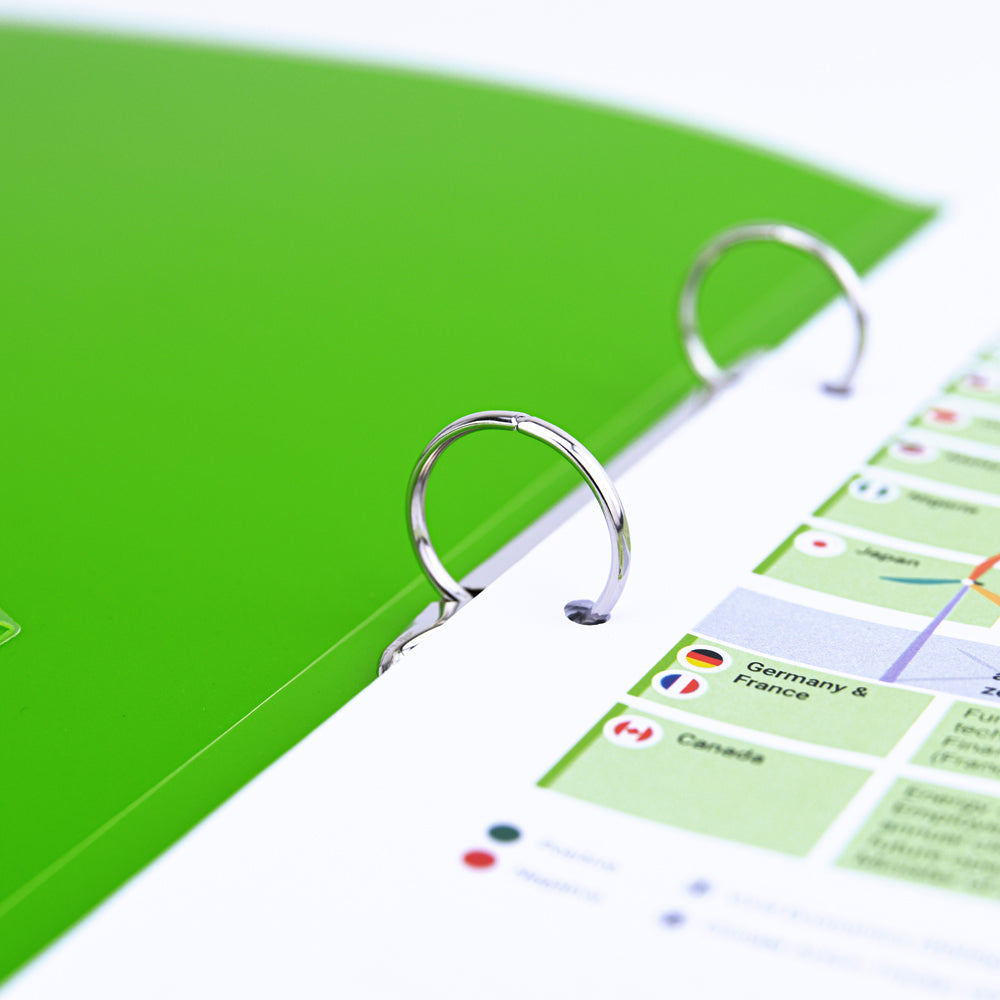 These polypropylene (PP) ring binders with 35mm spines complement our existing range of 2-ring binders, but these binders feature our special Germ-Savvy® antibacterial agent, which kills 99% of bacteria. Not only is this long-lasting, portable binder safer due to its lifetime protection agent but the 25mm paper capacity inside the ‘O’ ring makes it convenient for storage, as well as being less bulky and more lightweight to take on the move compared to bigger lever arch type binders. Additionally, its matt textured covers are made from durable non-toxic PP material making it acid and PVC free, another safety feature. It also boasts a handy removable label holder on the spine so that you can personalise and easily retrieve the correct folder.