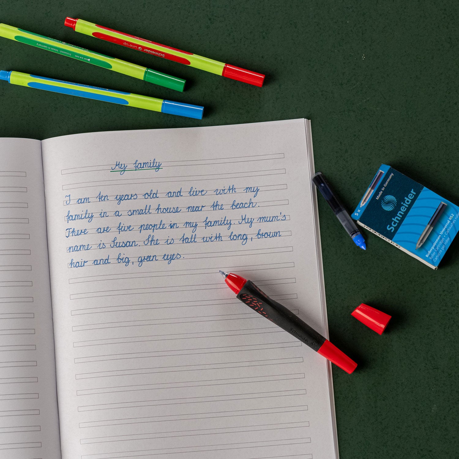 With its ergonomic design and the triangle-shaped soft-grip zone, it lays comfortably in your hand and is equally suitable for right- and left-handers. For studying, at school or for your own personal notes. Breeze writes easily, dries quickly and is smudge proof when highlighting it later on. A spare cartridge with new, unused tip is stored in the barrel. The royal blue ink is erasable.