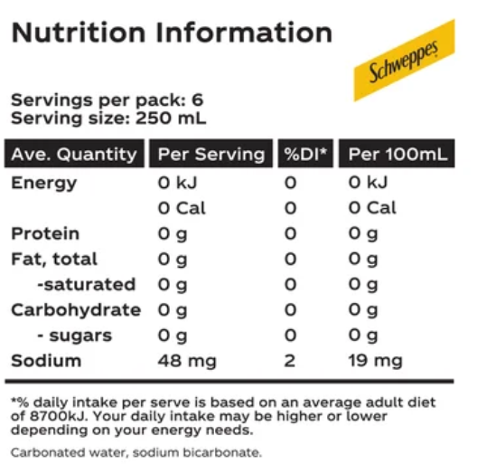 Schweppes Classic Soda Water Cans 6 x 250ml