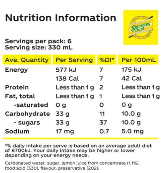 Schweppes Sparkling Duet Lemon Soft Drink Cans 6 x 330ml