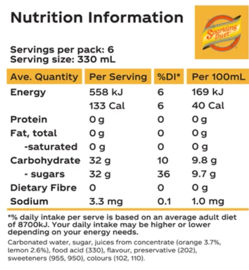 Schweppes Sparkling Duet Orange & Lemon Soft Drink Cans 6 x 330ml