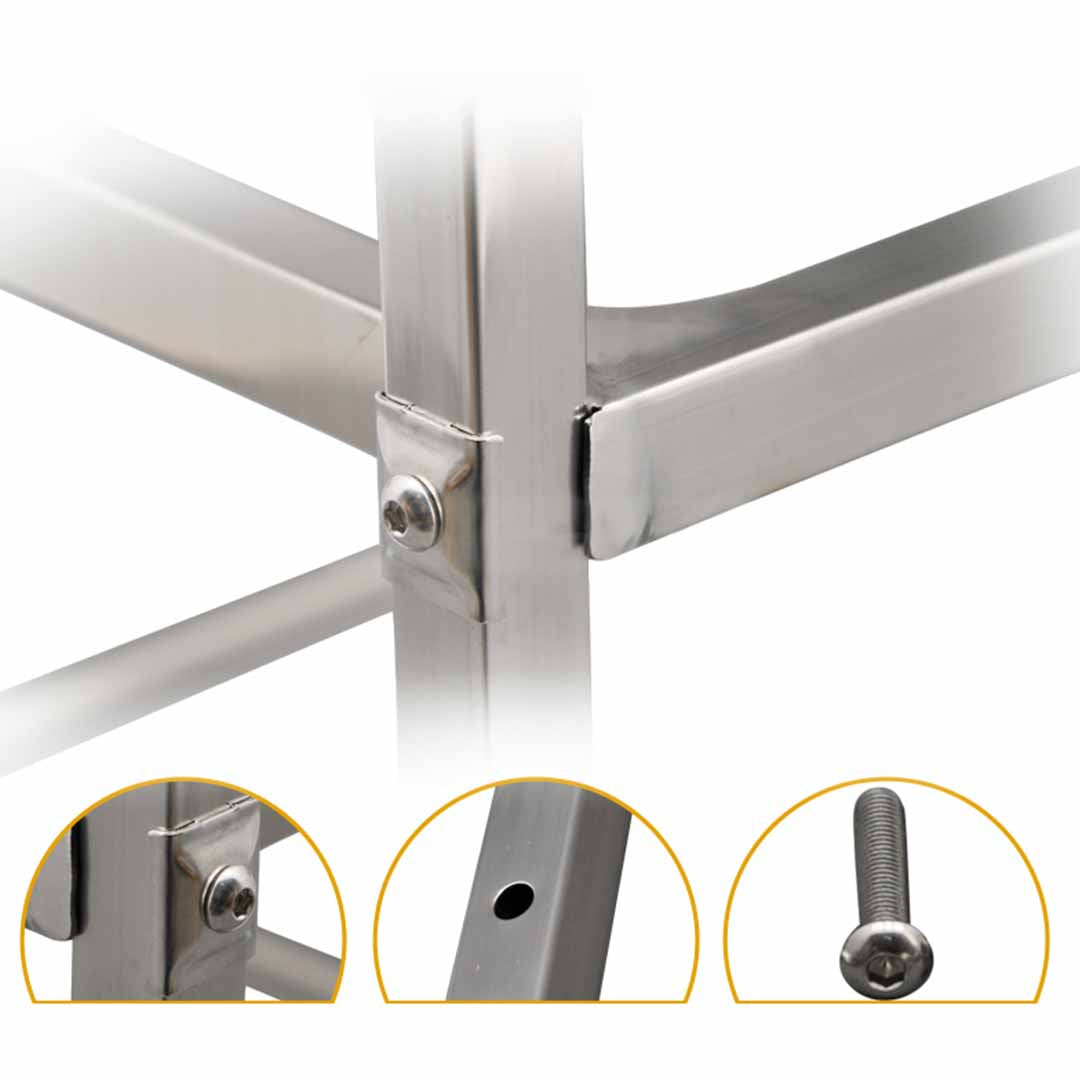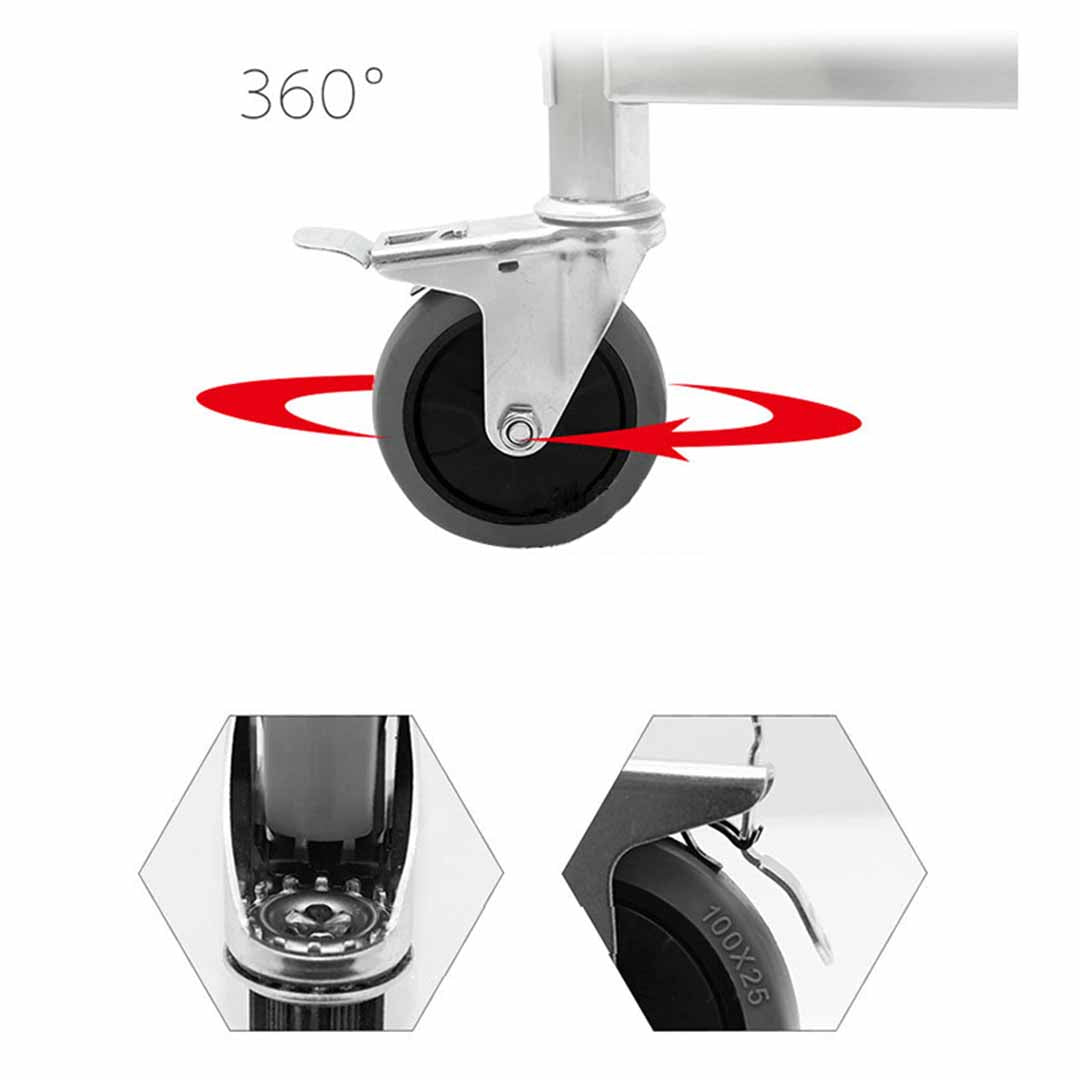 Make your move with this 18/10 Stainless Steel service and utility cart that's virtually maintenance free and perfect for industrial, medical, or food service loads. Easy-to-clean stainless steel cart won't rust. Cart features a 100mm deep, leak-proof top tray. The 2 x 4 inches swivel casters in front and 2 in back provide a soft ride and easy rolling over rough surfaces. SOGA Food Cart Made it for Easy assembly.