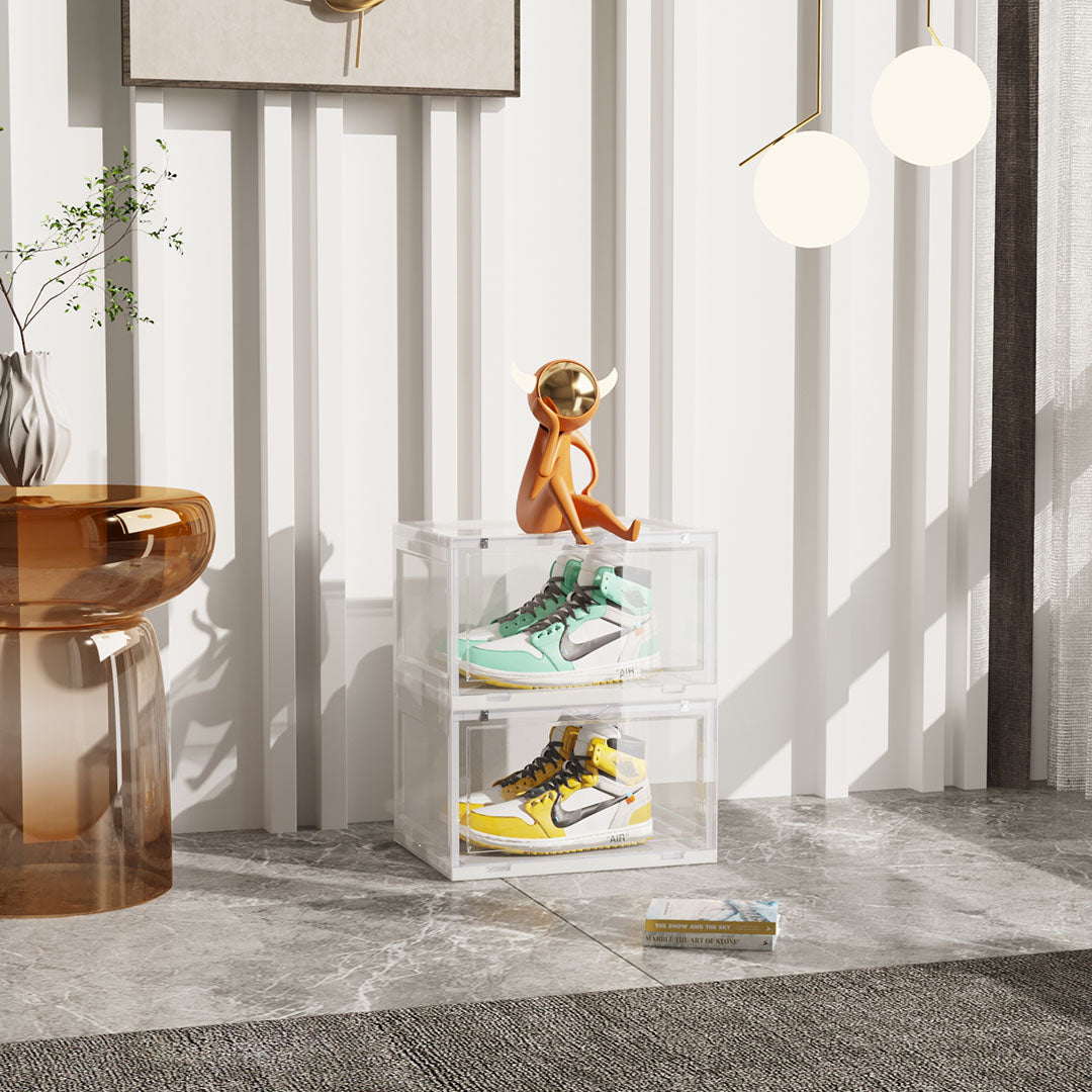 SOGA 2 Tier Transparent Portable Shoe Organiser Sneaker Footwear Folding Plastic Bin Stackable Storage Box with Magnetic Door