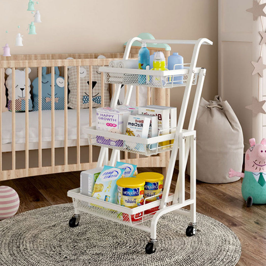 SOGA 2X 3 Tier Steel White Adjustable Kitchen Cart Multi-Functional Shelves Portable Storage Organizer with Wheels