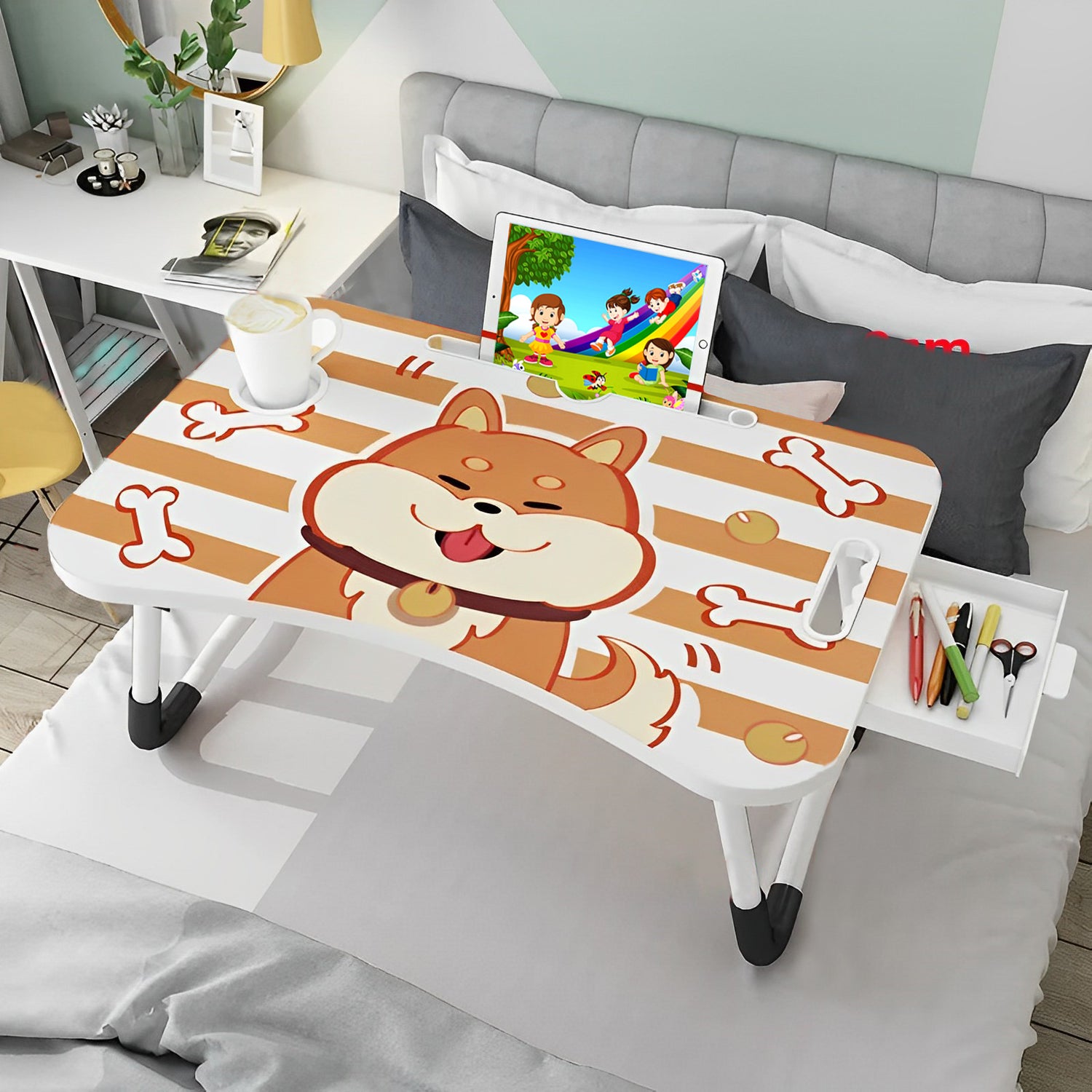 SOGA 2X Cute Dog Design Portable Bed Table Adjustable Foldable Bed Sofa Study Table Laptop Mini Desk with Drawer and Cup Slot Home Decor