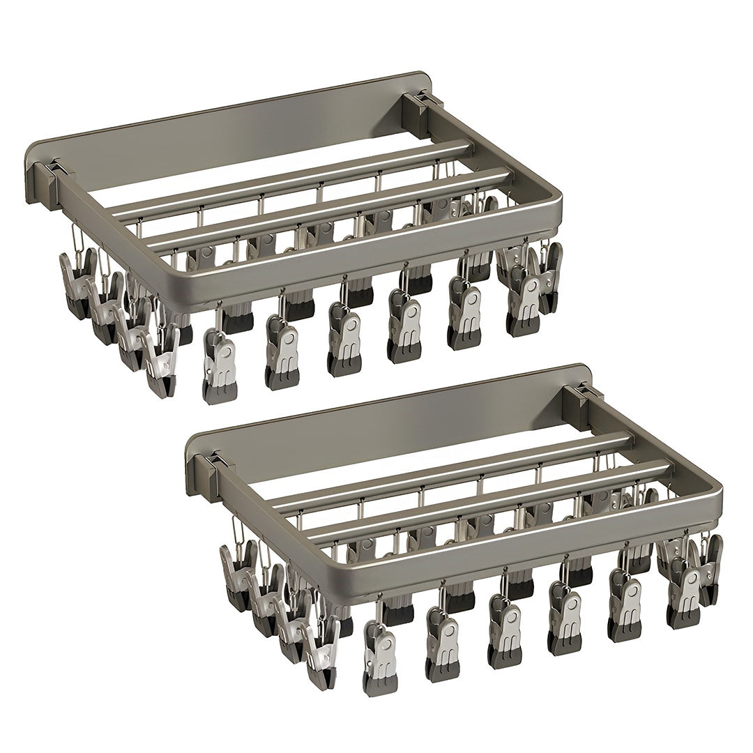 SOGA 2X Wall-Mounted Clothes Hanger Multi-Clamp Laundry Drying Wall Rack