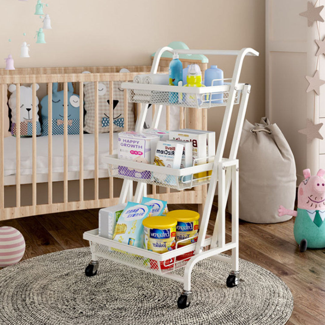 SOGA 3 Tier Steel White Adjustable Kitchen Cart Multi-Functional Shelves Portable Storage Organizer with Wheels