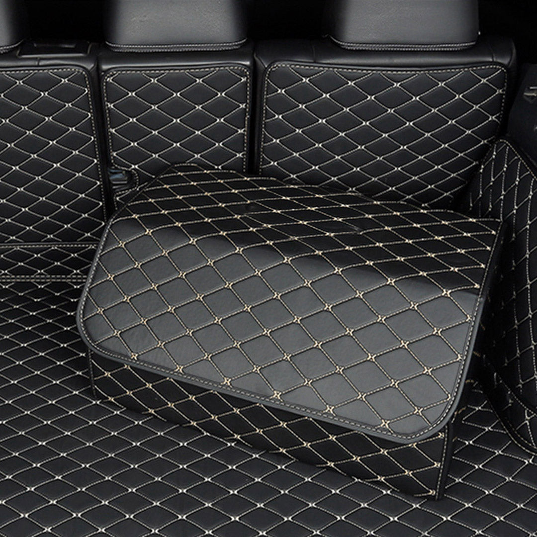 SOGA 4X Leather Car Boot Collapsible Foldable Trunk Cargo Organizer Portable Storage Box Black/Gold Stitch Large