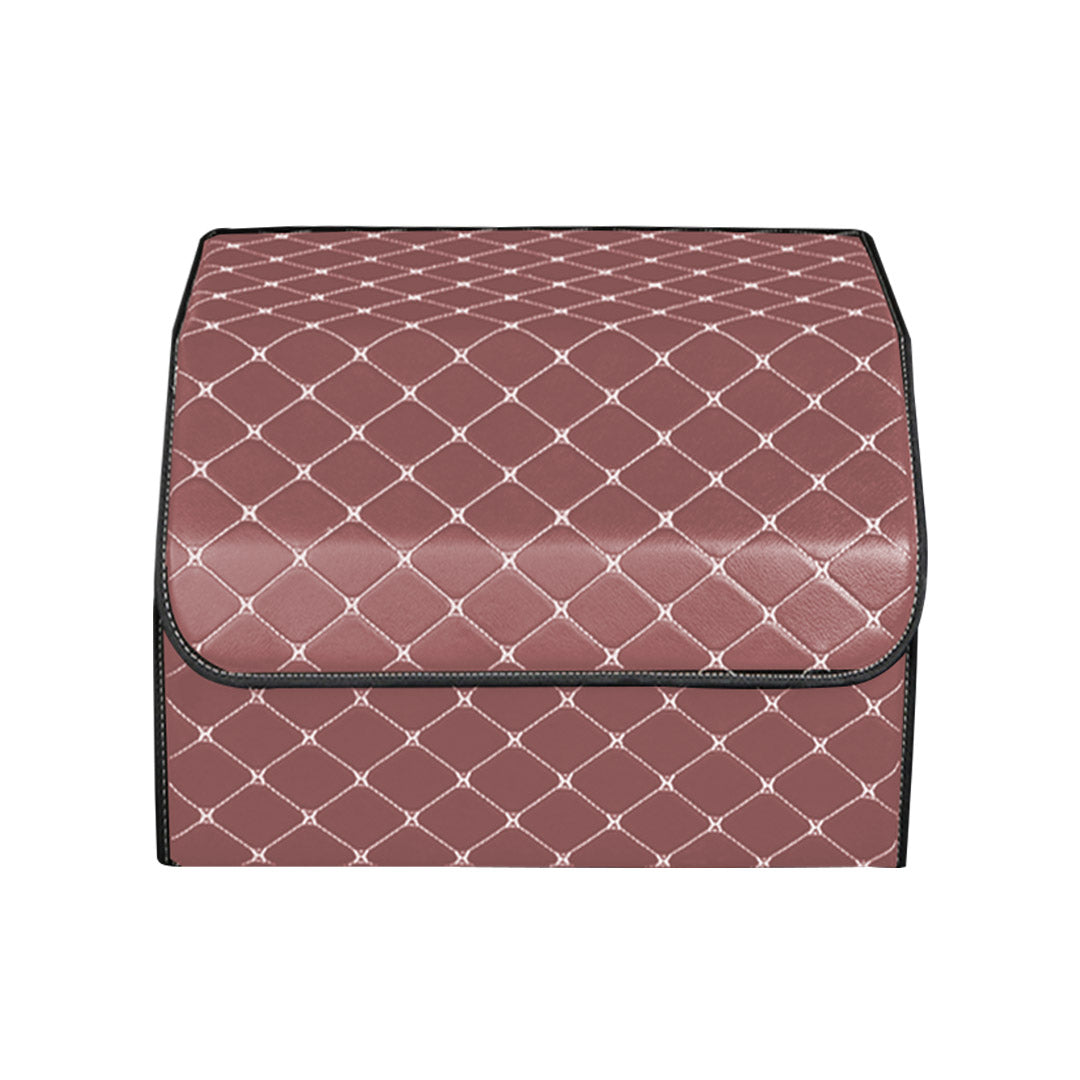 SOGA 4X Leather Car Boot Collapsible Foldable Trunk Cargo Organizer Portable Storage Box Coffee/Gold Stitch Small