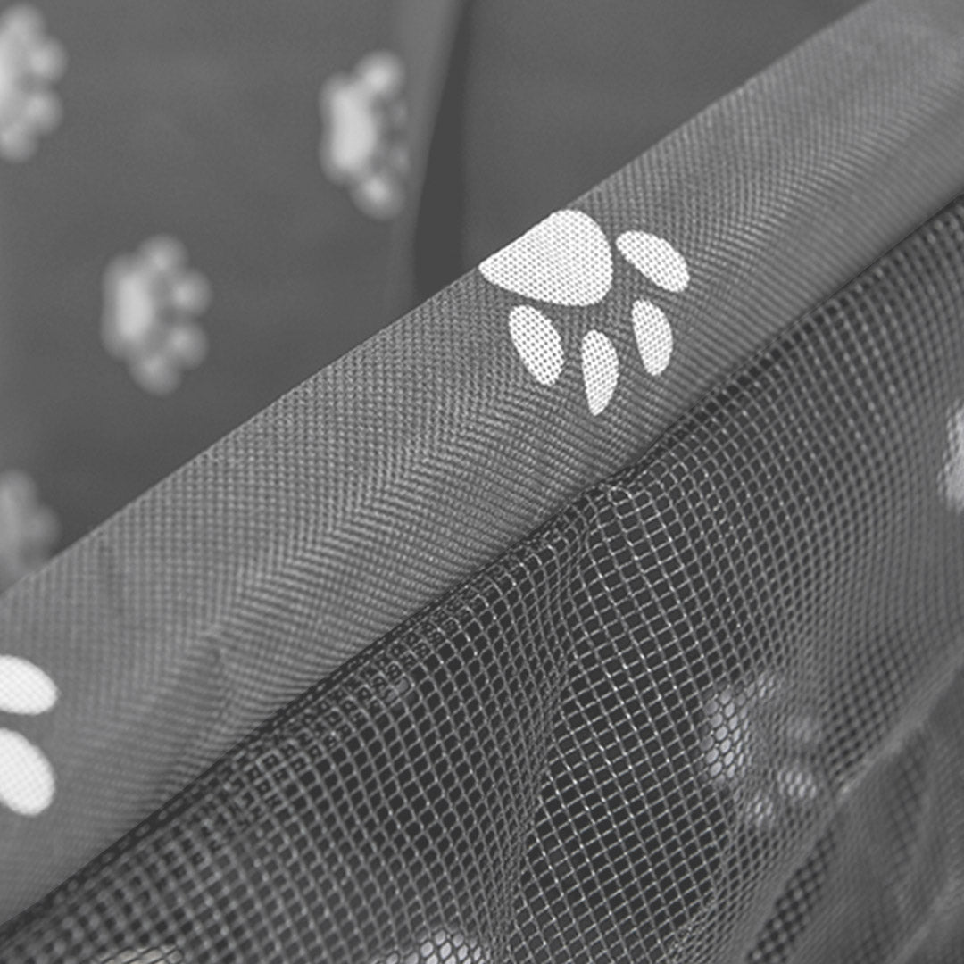 It is made of 600D oxford cloth and PVC mesh material that protects seats from pet hair, mud, and water. Oxford cloth is non-slip, sturdy, and waterproof, reducing the hassle of cleaning.