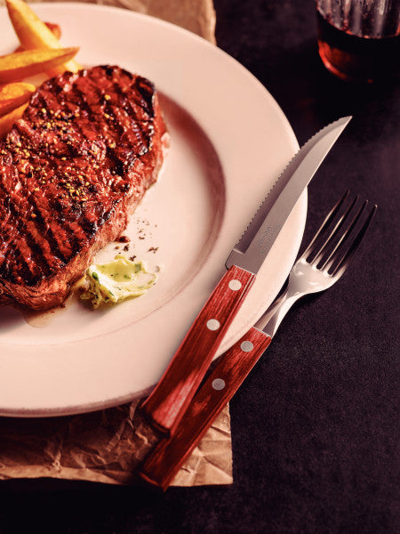 Do beautifully well with your barbecue and table service with Tramontina's 12-piece stainless steel flatware set with red Polywood handles. A complete set from the Churrasco line, offering knives and forks made of stainless steel and treated Polywood handles, resistant to shock and high temperatures, which adds beauty, high quality and durability to your table. It is the ideal choice for those who want everyone to have a great experience when savoring a good barbecue.